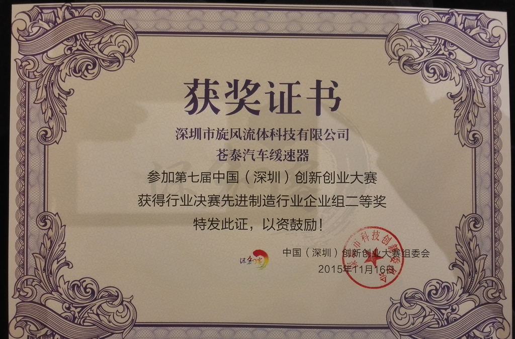 我公司苍泰汽车缓速器项目,在中国创新大赛中,杀入全国行业总决赛。并获得深圳市行业决赛先进制造行业企业组二等奖。
